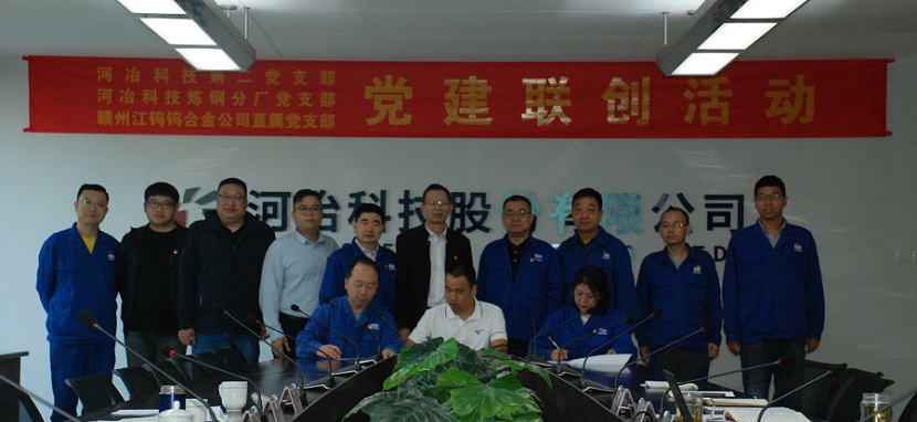 1011日,河冶科技第二黨支部、河冶科技煉鋼分廠黨支部與贛州江鎢鎢合金公司直屬黨支部黨建聯創活動在河冶科技召開,本次黨建聯創活動主題為黨建共建聚合力 砥礪初心勇作為 搭建平臺促發展”。
